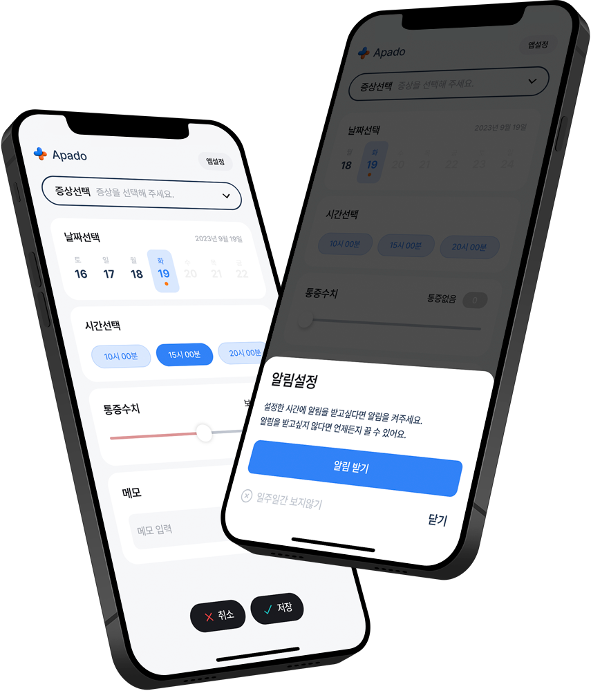 이에 Apado는 사용자들이 설정한 시간에 맞춰 알림을 보내드리며