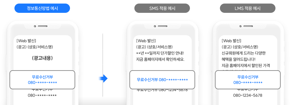- 정보통신망법에 의거하여 표기의무 사항 위반 시, 스팸문자로 분류되며, 과태료가 부과되실 수 있습니다.