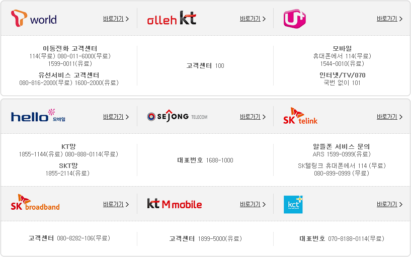 통신사 고객센터 안내