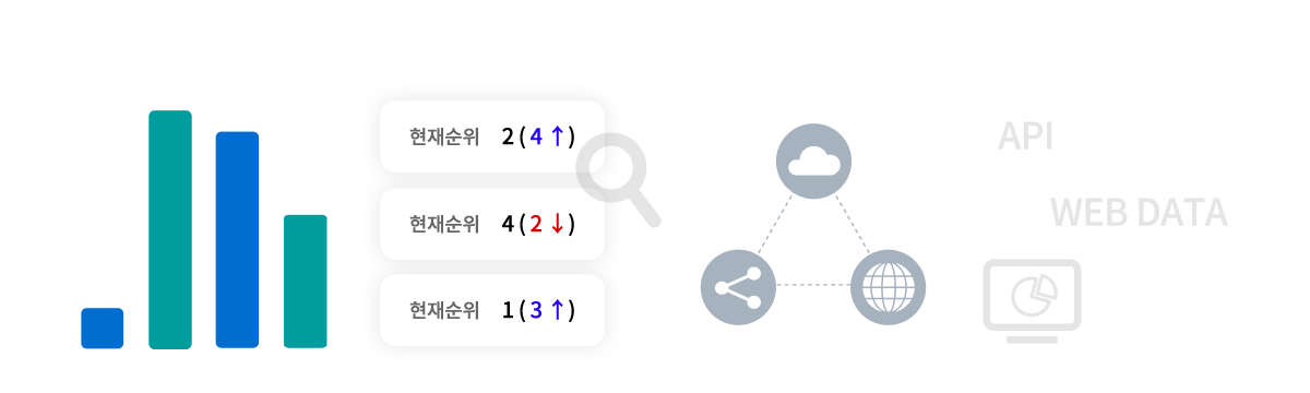 API 통신과 더불어 Web Data 정보를 실시간 수집하여 정확한 순위 추적 가능