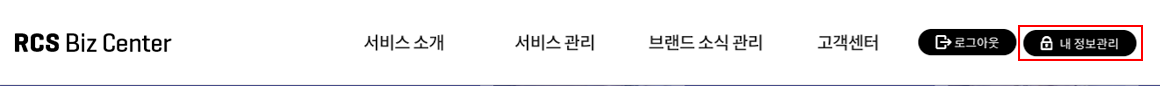 RCS Biz Center 로그인 후 우측 상단 내 정보관리 메뉴 클릭