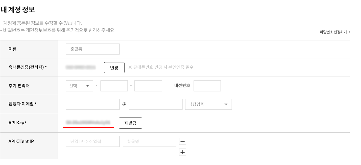 RCS 브랜드를 연동하기 위해서는 계정 ID, API Key가 필요합니다.