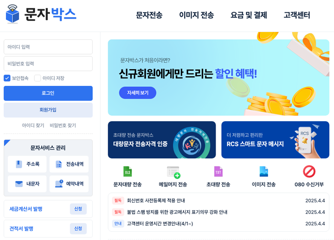 문자박스는 단체문자도 컴퓨터로 쉽게 보낼 수 있는 문자사이트입니다!