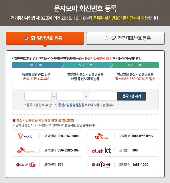 개인 회원은 본인 명의의 번호로만 단체문자 보내기가 가능하니 이 점 유의해 주세요!