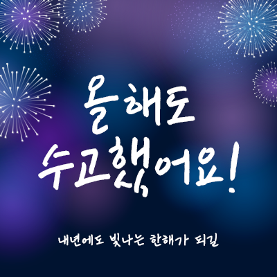 지난 한 해 동안 함께해 주셔서 감사합니다. 올 한 해도 건강과 행복이 가득하길 바라며, 더욱 성장하는 한 해 되길 기원합니다. 새해 복 많이 받으세요!