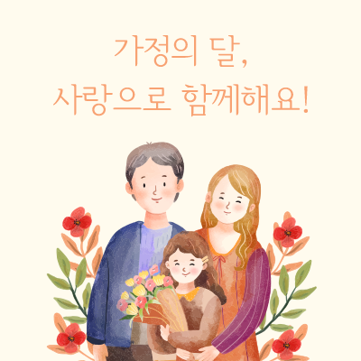 사랑하는 가족에게, 가정의 달을 맞아 그동안의 수고와 노고에 감사드리고, 항상 우리 가족이 함께라서 얼마나 행복한지 모르겠어요. 그 어떤 어려움도 함께라면 이겨낼 수 있다는 믿음이 있기에 오늘도 이렇게 웃을 수 있는 거죠. 다가오는 날들도 웃음과 행복이 끊이지 않길 바라며, 우리 가족의 사랑이 더 깊어지고 따뜻한 순간들이 많아지기를 기원해요.